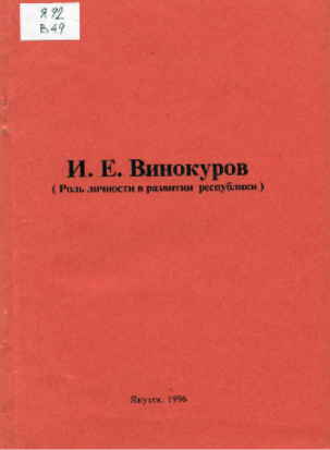 И. Е. Винокуров [Роль личности в развитии республики] ; ответственный редактор В. Р. Кузьмин. – Якутск : Политграфист, 1996. – 90 с. Читать